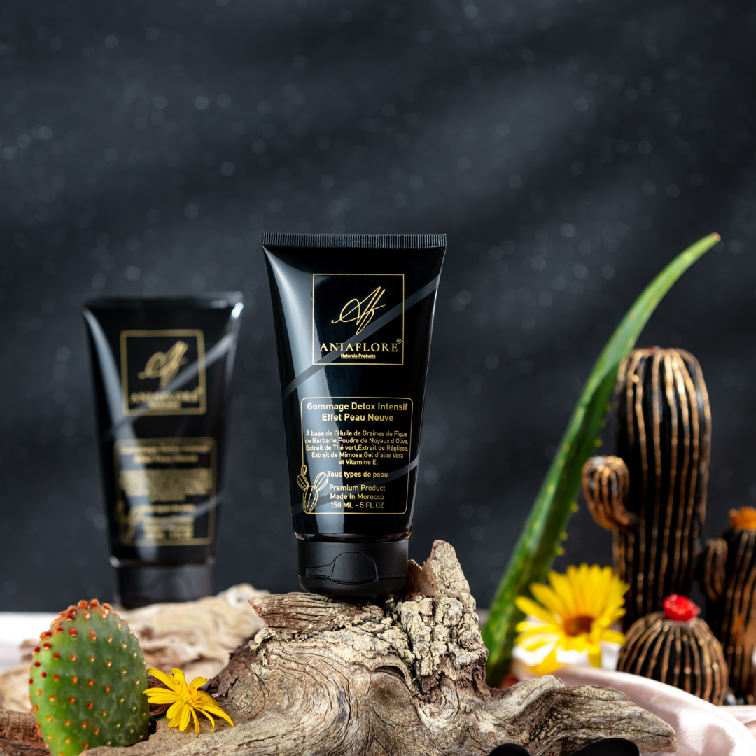 Surprenant gommage exfoliant d’ANIAFLORE®, cocktail ultra-frais d’extrait de Thé vert, extrait Mimosa, extrait de Réglisse, extrait d’Hibiscus, Vitamine E, Poudre Naturelle de Noyaux d’Olive et la précieuse Huile de Grains de Figue de Barbarie, libère la peau des cellules mortes pour la laisser ressourcée et vivifiée, comme neuve. Sa texture granitée et son irrésistible parfum réjouissent les sens, pour vous procurer une sensation de fraîcheur et de netteté.